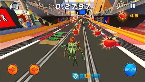 收集赛道中的番茄获得额外的分数。