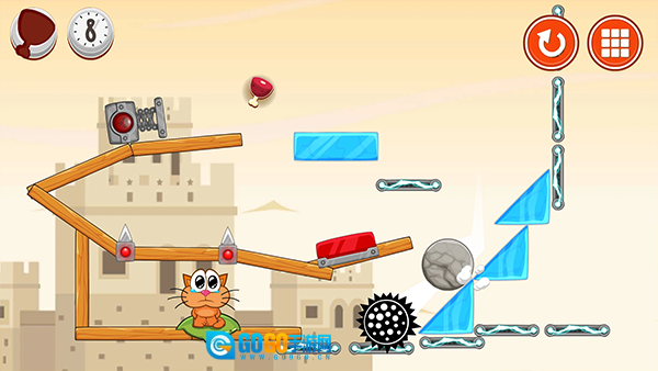 有着各种有创意的关卡设计,解谜让小猫享用美食,通关。