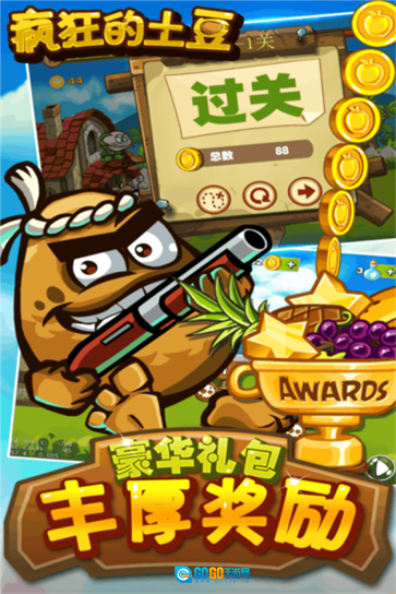 《疯狂的土豆》这款游戏有着充满卡通趣味的画面场景,玩法十分简单,玩家只需通过放置土豆来升级武器装备,就能获得解压又休闲的游戏体验,它是一款非常好玩的单机休闲策略塔防闯关游戏。