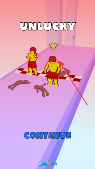 若挑战未成功,界面会显示【UNLUCKY】,此时点击【CONTINUE】按钮即可重新开启挑战,你可以调整策略后再次尝试通关。