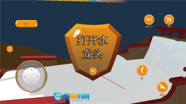 游戏采用经典轮盘控制方式,玩家可通过轮盘操控角色移动,跟随指引完成任务;同时,左下角与右下角的按键可用于执行相应操作。