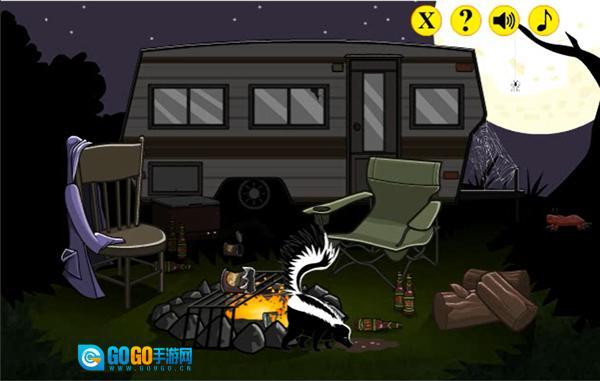 我们先点击报纸,接着点火坑;再点右下角的柴火,然后点火坑。之后点击左边的罐头盒,把它放到烤架上;再点击穿紫色衣服的人(或角色)口袋里的火机,然后点火坑。等臭鼬去吃烤架上的罐头时,点击臭鼬吃剩下的罐头和蜘蛛网;等蜘蛛爬下来后,再点击蜘蛛网,接着点击臭鼬。等臭鼬被蜘蛛网包裹后,最后再点击一次臭鼬。最后点击有破洞的车窗口,进入箱车。(直接点击臭鼬会触发一个好结局)