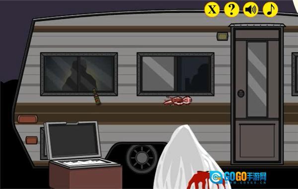 第一部分我们先点击下方的箱子,接着点击里面的瓶子去击碎箱车的玻璃,最后点击碎掉的玻璃,就能进入箱车。(要是直接点击箱车的话,会触发一个好结局)