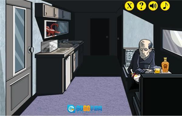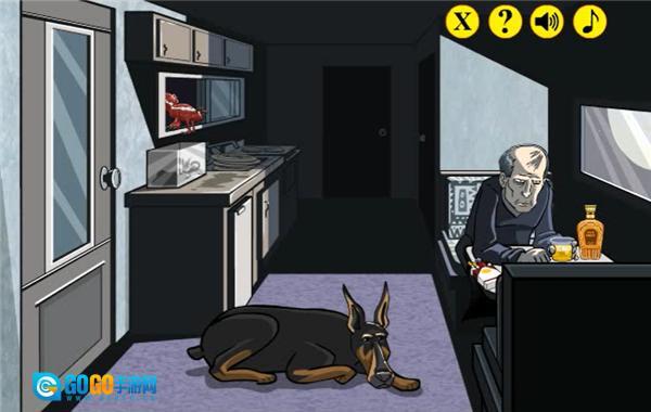 第一部分我们先点击蝎子,接着点击狗身后的柜子,随后点击柜子里的香肠,等狗被赶出去后,再点击虫子后面的窗子,从箱车离开。