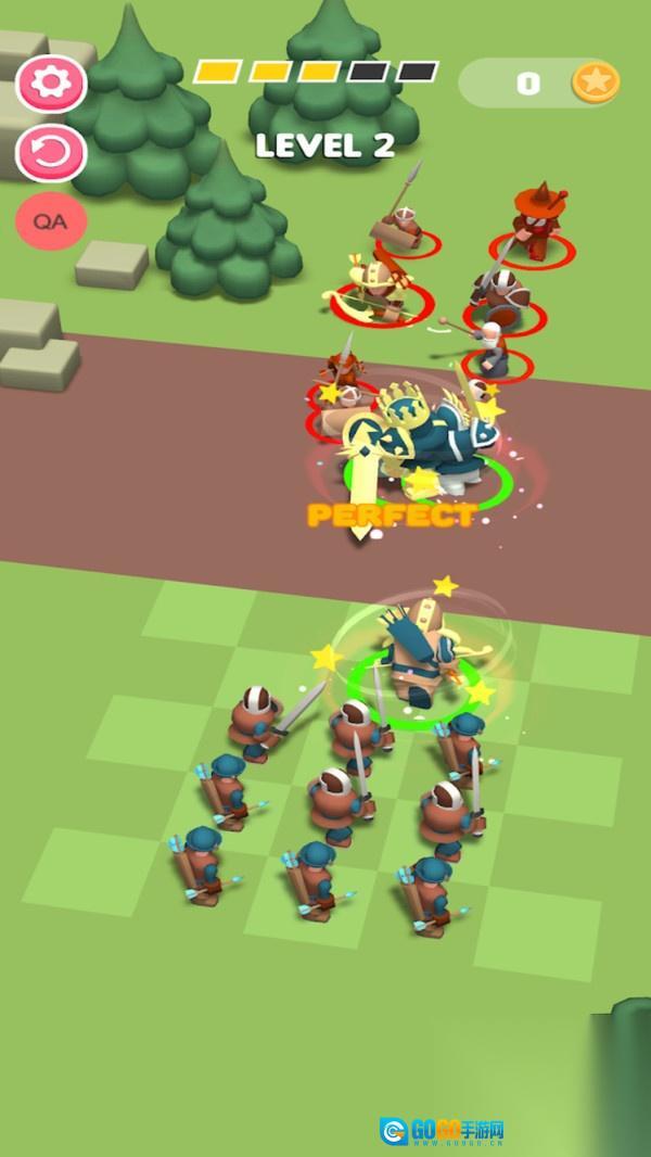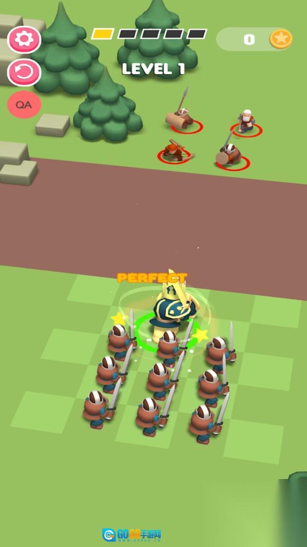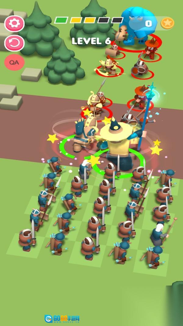 当获胜提示【YOU WIN!】出现后,点击【CONTINUE】按钮即可进入下一关。在此过程中,你可以不断积累经验,调整并优化士兵的合成策略,从而更好地挑战后续的关卡。