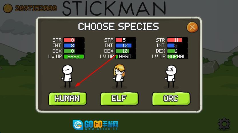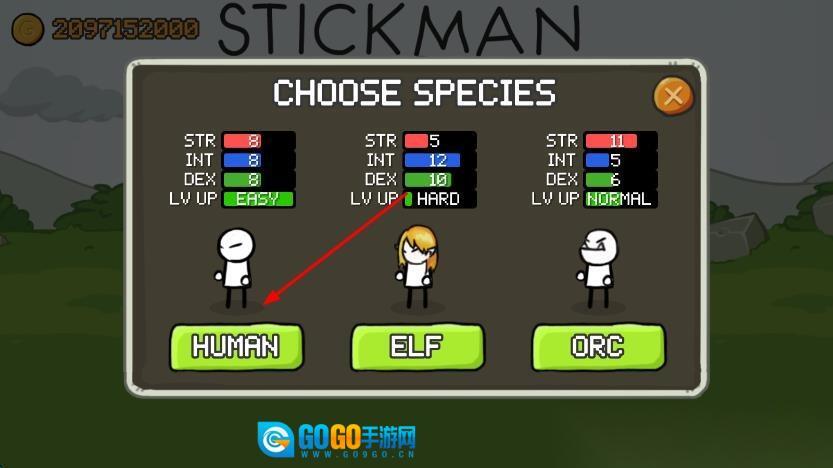 进入游戏后,首先要选择人类、兽人或精灵这几个物种,再搭配炮手、弓箭手等不同职业,之后在关卡界面点击“开始”,就能操控火柴人移动射击,迎战各种怪兽了。