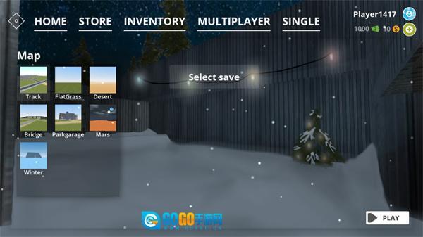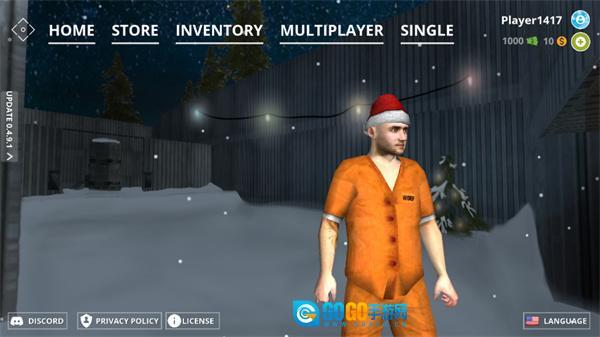 进入游戏后,界面上从左到右排列着五个功能选项,依次为主页(home)、商店(store)、仓库(inventory)、多人游戏(multiplayer)和单人游戏(single)。