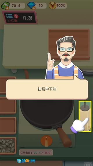 刷完后点击油瓶,往锅中倒油。