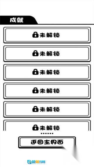 屏幕上呈现出若干个标注为“未解锁”的成就条目,界面底部设有“返回主界面”按钮,整体仅展示游戏成就解锁进度的通用呈现场景。