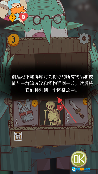 在游戏的准备阶段,创建地下城牌库时,会把你拥有的全部物品和技能与一群流浪汉及怪物混合起来,再将这些内容排列成一个网格的形式。