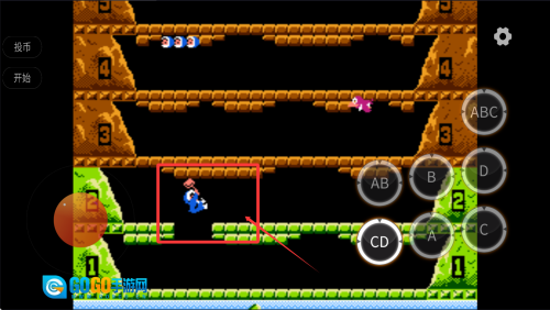 这是您的操作界面,敲碎冰块后跳跃上去,这些操作在通关过程中都会用到。