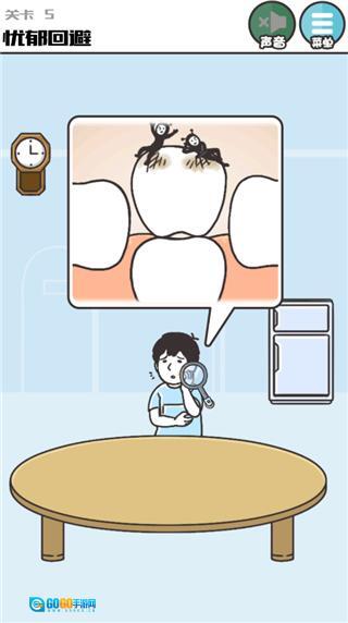 从时钟处获取放大镜,先点击蛀牙下方的新牙,再点击蛀牙使其脱落。