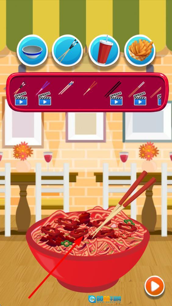 把煮好的意大利面盛到盘子里,再配上炸薯条、沙拉之类的配菜;完成顾客的订单就能得到金币,这些金币可以用来解锁新的食材和厨房设备。