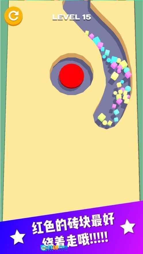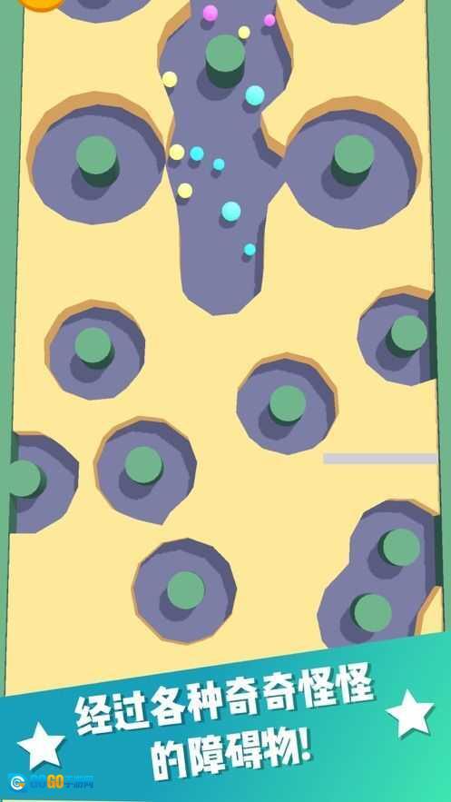 进入界面后,通过滑动屏幕来操控球球的移动方向,瞄准坑洞滚动以填充它。在此过程中,要留意避开尖刺陷阱和移动的障碍物,进而完成基础的填坑任务。