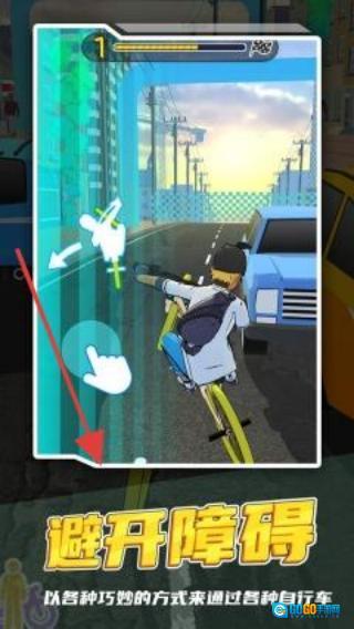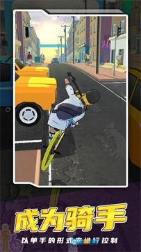 进入游戏后,用单手操控角色骑行,熟悉街道环境,注意路面上的坑洼,平稳地开始骑行。