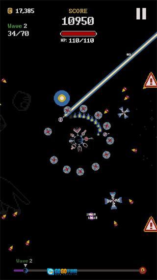 操控机制设计简洁:玩家只需通过触控拖曳即可控制飞船移动,武器系统会自动锁定目标发起攻击,整体操作逻辑直观易懂、轻松上手;此外,还巧妙融入了行星自转这一影响弹道轨迹的变量因素。