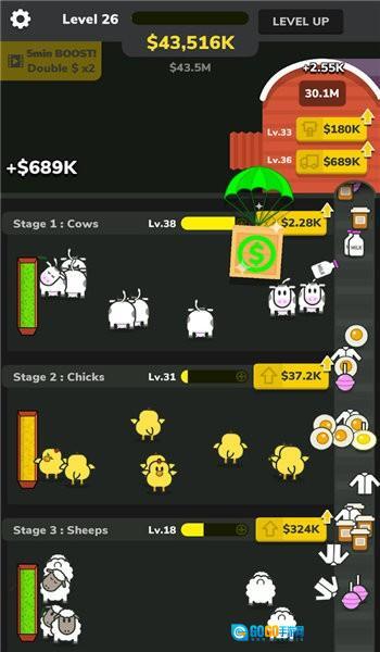 轻松放置的玩法:无需复杂操作,简单点击即可完成农场经营的大部分操作。