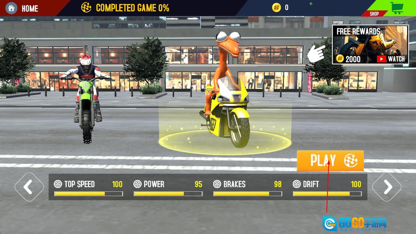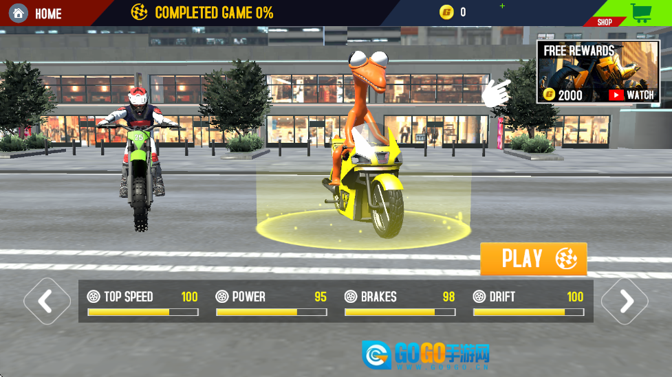 进入游戏后,先从丰富多样的车型里挑选符合物理特性的摩托车,再依据特技场景的具体需求完成驾驶前的准备工作。