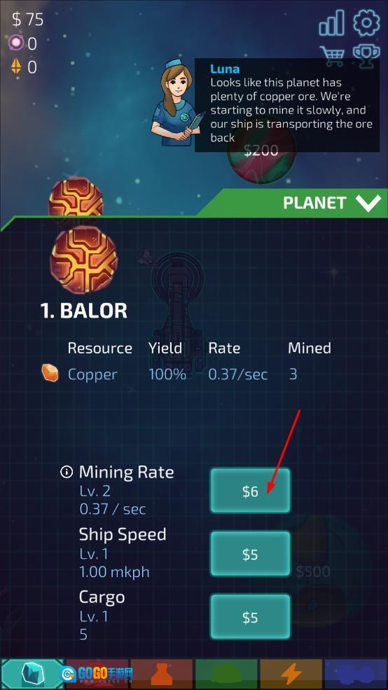 进入游戏后,首先操控采矿船前往选定的星球,点击屏幕就能启动挖掘作业。在初始阶段,要集中精力开采基础矿石,攒下第一笔资源,为后续的发展打下基础。