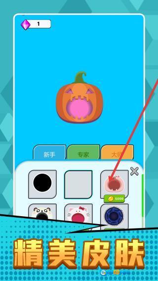 在皮肤选择界面,点击箭头所指的特定皮肤(例如粉色系皮肤),消耗5000金币完成购买,即可为角色更换外观造型,从而增强游戏的个性化体验。