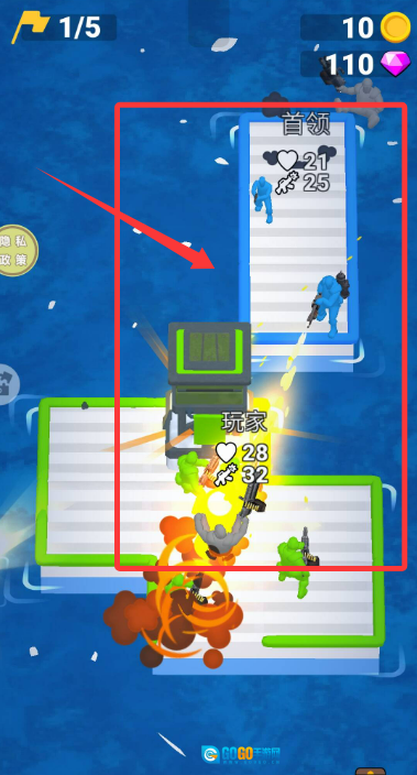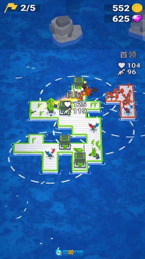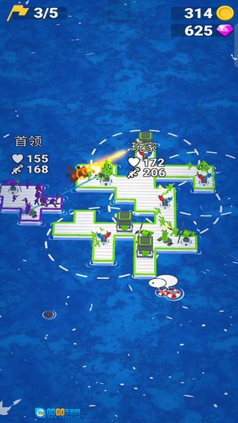 游戏开始后,点击水面上漂浮的救生圈来收集士兵,每成功解救一名人员,你的海上军团规模就会相应扩大。