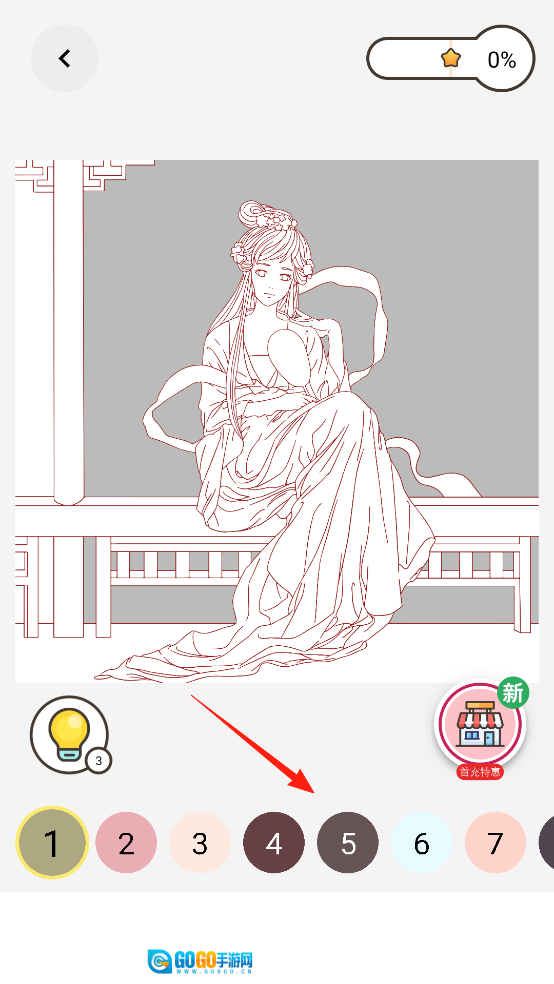 进入涂色界面后,你会看到线稿和各种颜色选项。点击下方的颜色,就能将其填充到对应的区域。借助色彩填充的功能,你可以为线稿逐步上色。通过这样的操作,不仅能推进涂色的进度,还能体验色彩搭配的乐趣,最终塑造出独特的画作外观。