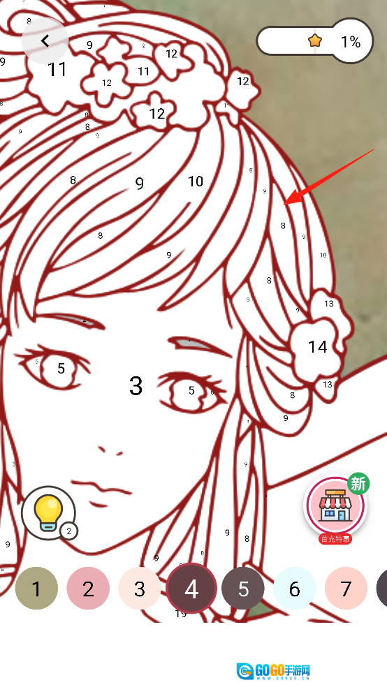 开启数字涂色功能后,线稿上的数字与对应颜色相匹配。只需点击标有数字的区域,系统便会自动填充预设色彩,实现精准上色。通过这一系列操作,你可以逐步完成细节绘制,体验数字引导创作带来的乐趣,让画作的细节更加完善。