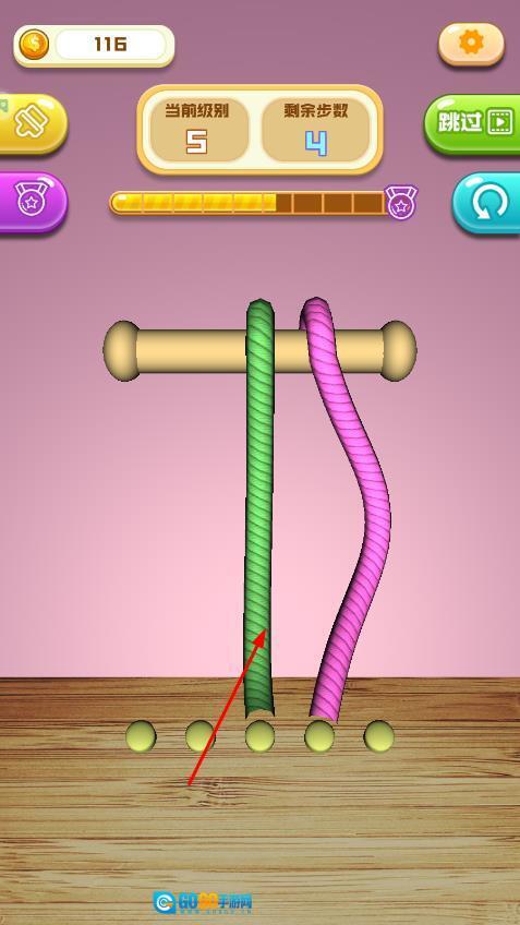 难度采用渐进式设计:前期关卡的绳结结构较为简单,随着游戏进程的推进,绳子的数量会不断增多,缠绕的复杂程度也会逐步升级,有时还会加入固定节点、弹性绳等新元素,难度随之逐步提升,让玩家在闯关过程中始终保持新鲜感。