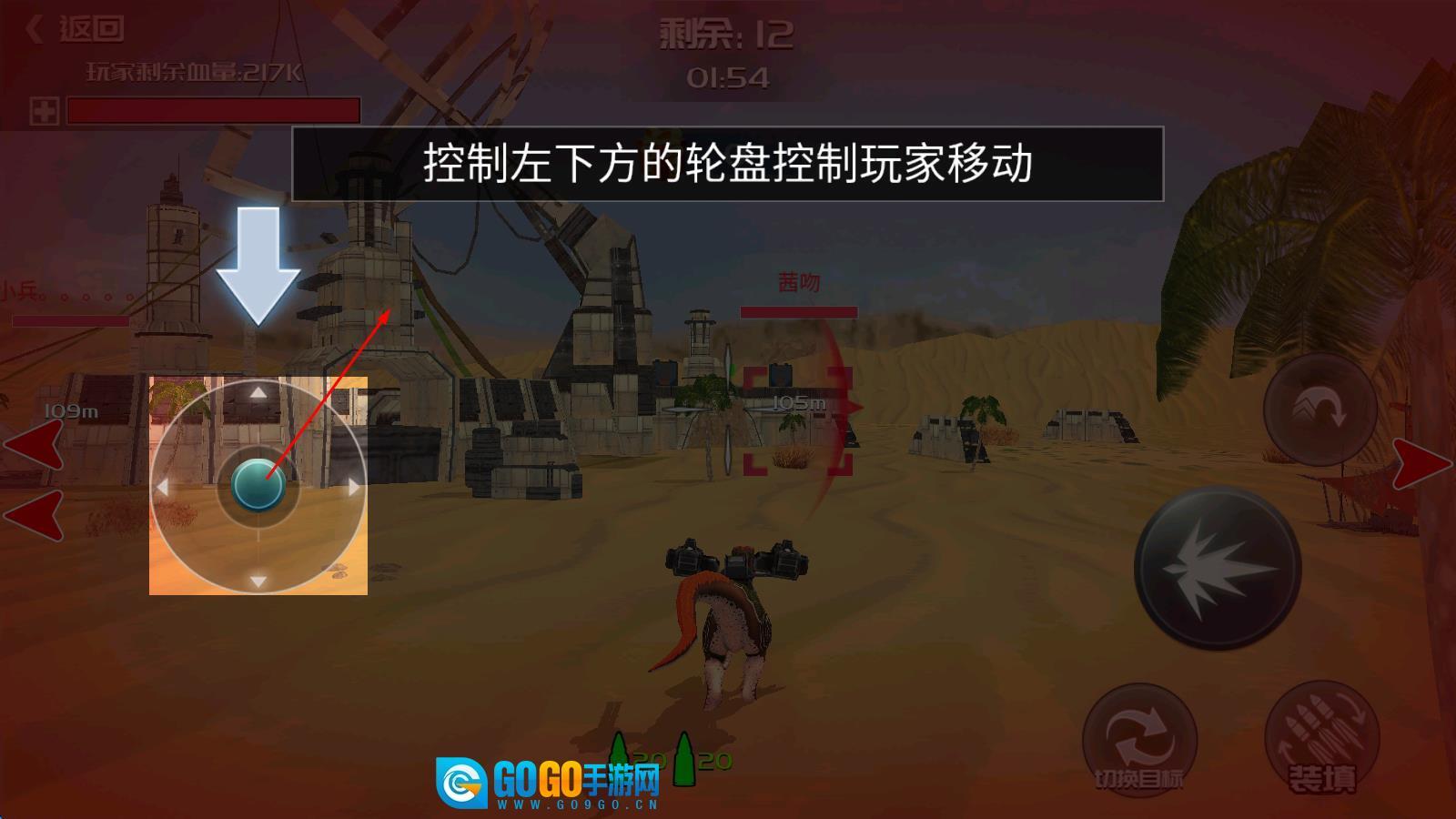 战斗时,锁定敌人后按下射击键发动攻击,弹药用完了就点击装填来补充,碰到障碍物可以用跳跃技能翻过平台,还要灵活切换锁定的目标来对付多个敌人。
