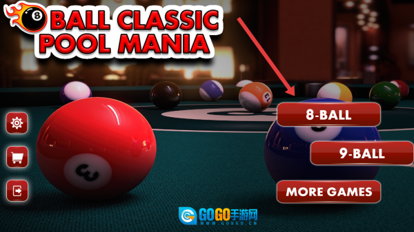 在Ball-Classic-Pool-Mania的主界面,你可以点击8-BALL按钮,选择8球模式,从而进入台球对战环节。