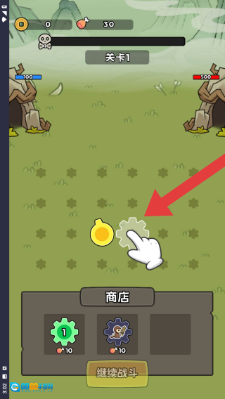 这是一款包含关卡挑战与商店系统的玩法,玩家可点击图示位置进入商店,完成道具等物品的购买操作。