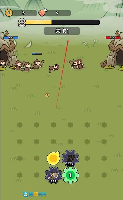 齿轮布置战斗:该玩法以齿轮防守为核心,首先需将猴子移动至指定位置,随后放置齿轮即可启动战斗。当能量积蓄完毕后会自动生成作战单位,通过击败敌人不断向前推进,顺利完成关卡挑战即为胜利。