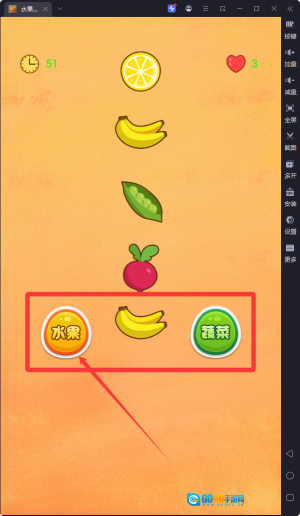 玩家需要仔细观察题目所展示的水果或蔬菜图片,从4个选项里挑选出正确答案,答对就能得到积分奖励。