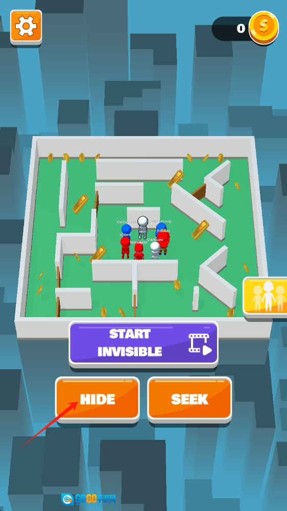 在游戏模式选择界面,你可以依据自己的喜好挑选HIDE模式或者SEEK模式。要是选择了HIDE模式,点击START-INVISIBLE就能获取隐形的优势。