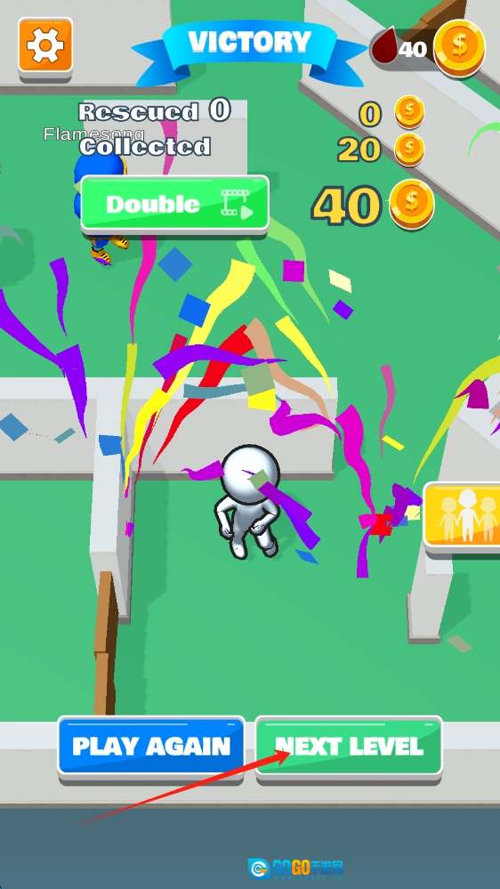当游戏胜利并进入胜利界面后,你可以根据自己的需求选择PLAY-AGAIN来重新挑战当前关卡,或者点击NEXT-LEVEL开启新的关卡挑战。