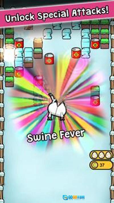 用鸡蛋发起攻击:射出鸡蛋能击碎挡路的障碍,击倒那些被感染的动物;通过精准的瞄准让鸡蛋命中目标,再借助不同种类鸡蛋的独特优势,高效清除障碍,为顺利逃离农场开辟道路。
