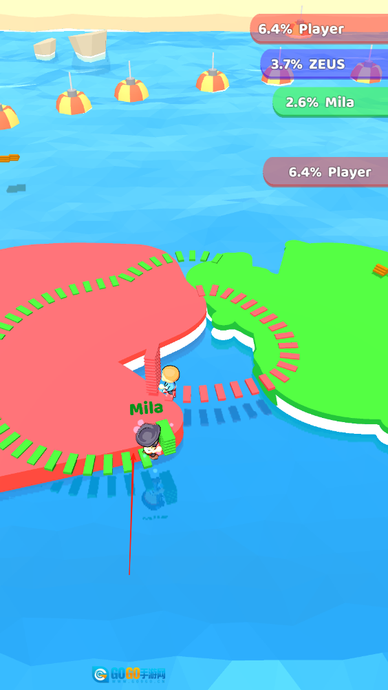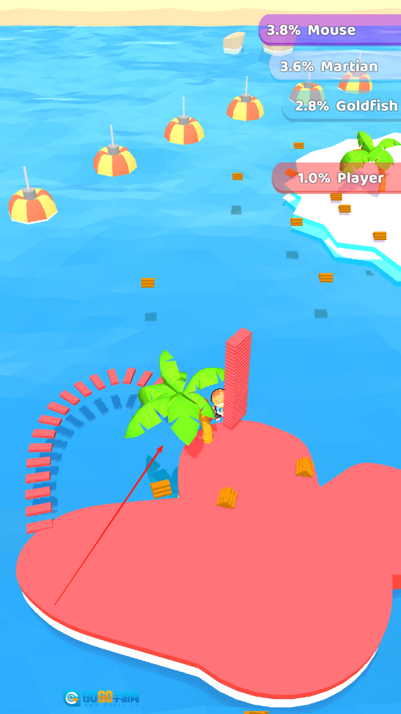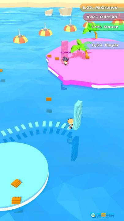 在竞赛场景中遇到其他岛屿时,以跑酷竞速、资源抢夺等形式展开对抗,战胜对手后便能征服其岛屿并夺取部分资源,从而加快自身的扩张进程。