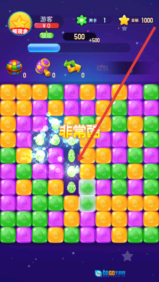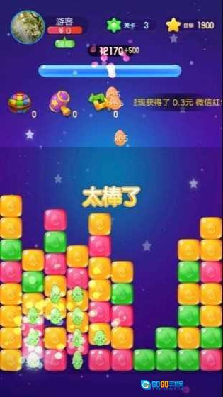 消除核心规则:点击相连的同色方块就能消除,消除的方块数量越多,获得的分数就越高;每一关都要达到规定的分数才能顺利通关。