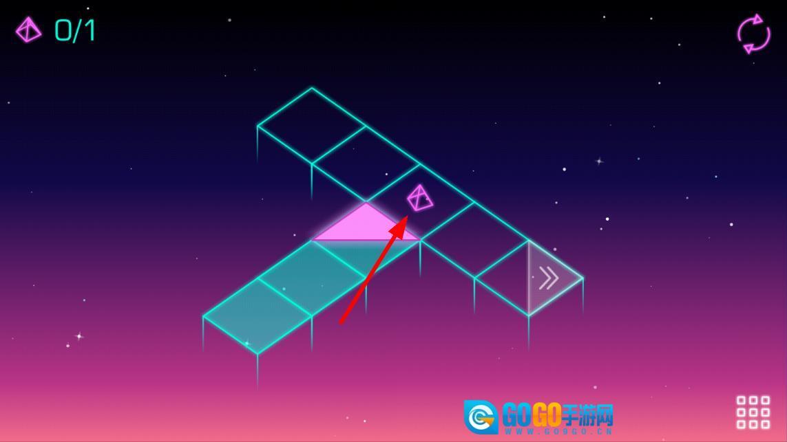 在关卡里借助对称移动的技巧来调整三角形的朝向,规划合适的路线以收集全部三角体,避开空间中的障碍,通过反复尝试来优化移动的路径。