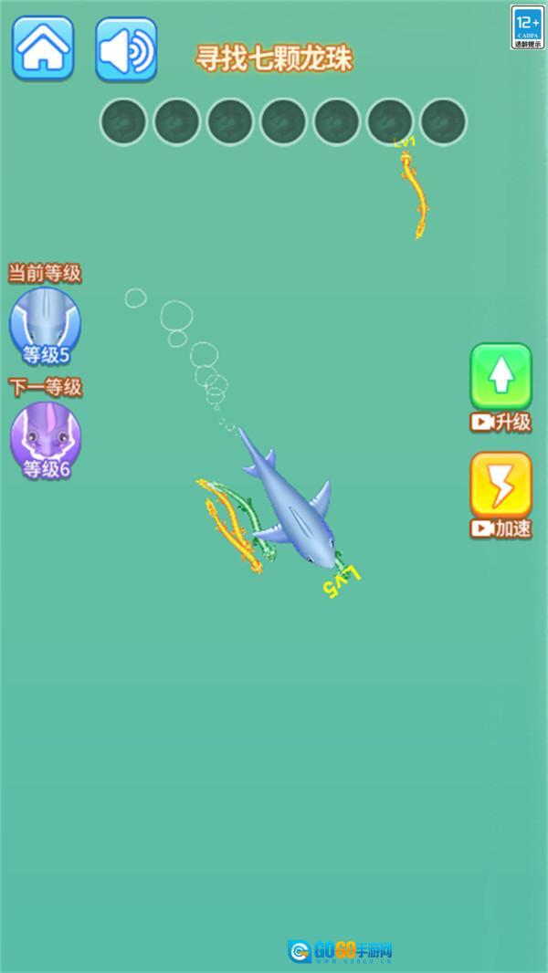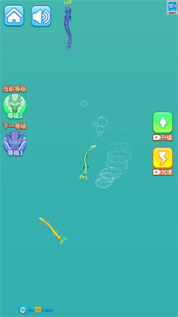 通过吞噬积累能量:控制神龙幼体“小蝌蚪”在场景里移动,吞掉比自身弱小的生物来获取能量,当能量积攒到临界值时就会触发进化,解锁更强的神龙形态,从而增强生存优势。