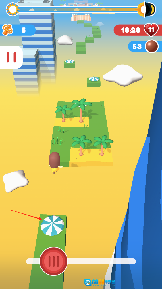 遇到间隔时小人会自动跳跃,但遇到较长间隔时,需要操控它踩上跳板才能跳得更远。