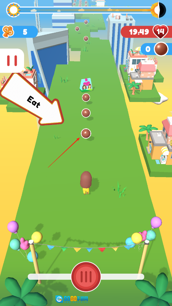 小人持续向前奔跑,我们需要操控它吃掉前方出现的巧克力和礼包,同时注意避开障碍物。