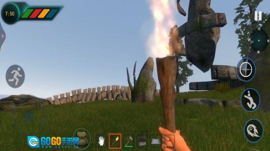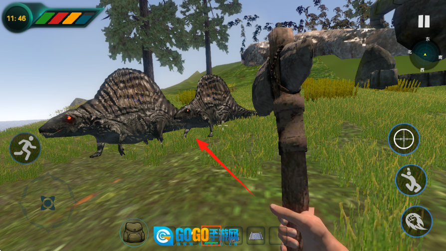 手持石斧之类的工具,去攻击异齿龙这类恐龙,将其击败后收集资源,这些资源可用来建造、升级设施,以此增强自身的生存能力。