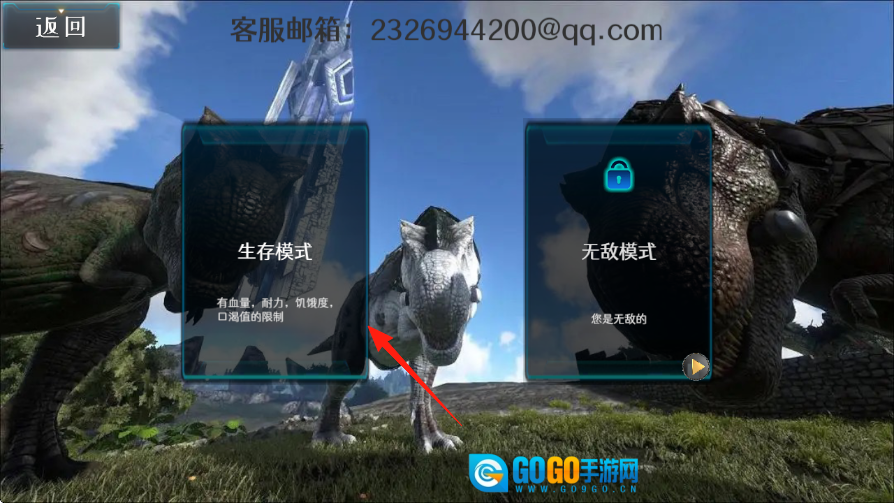 在初始界面选择生存模式后,冒险将受到血量、耐力、饥饿度和口渴值的限制,由此开启恐龙世界的探索之旅。