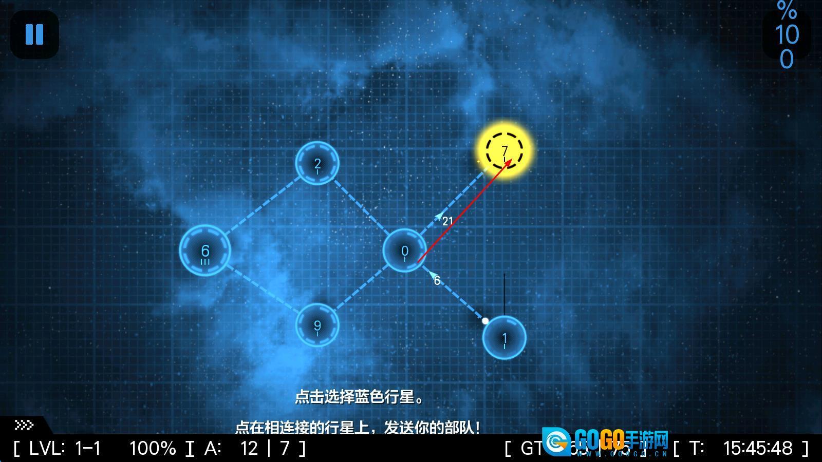 游戏进行到一半时,借助自动路径系统来快速调遣军队,要判断清楚是去占领新的星球以积蓄力量,还是去阻挡敌方的进攻,并且要在合适的时机升级部队,以此来提升自身的实力。