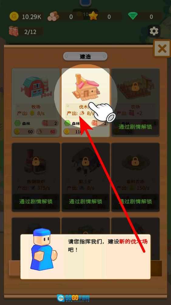 进入建造界面后选择伐木场进行建造,伐木场建成后每秒可产出8单位木材,建造过程需消耗11金币。建造伐木场能够有效解决木材短缺的问题,为后续发展提供稳定的资源支持。