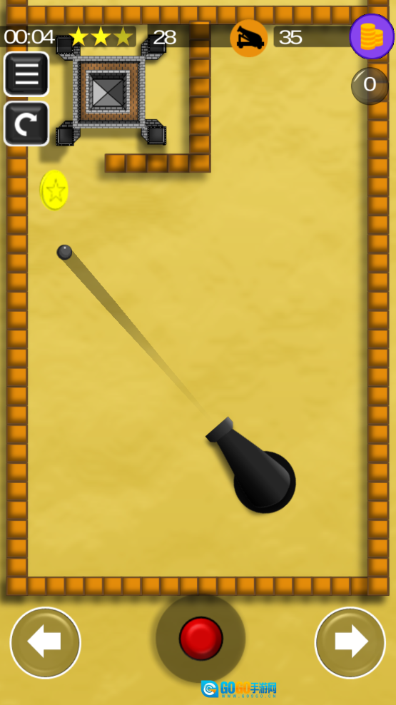调整角度时,需操控大炮方向来设定发射角度,同时结合场景里的墙壁和阻挡器,推算火球的反弹轨迹,以此保证射弹能够准确击中敌人的城堡。