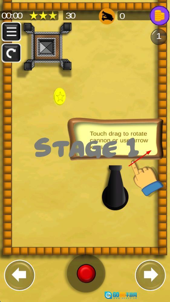 进入游戏后,先留意敌人城堡的位置以及周边环境,调整好大炮的方向,确定火球一开始的发射角度,为精准的反弹提前做好准备。