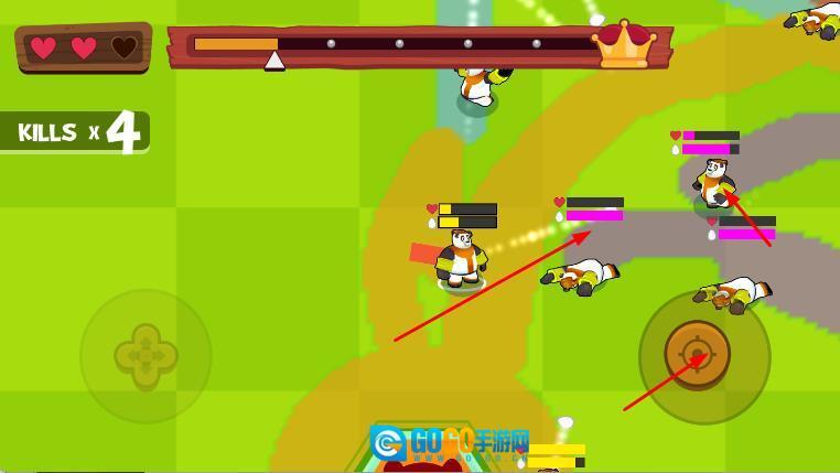 在战斗场景中,右侧的虚拟按钮用于操控角色进行射击操作,具体包括让角色拿起武器、瞄准目标以及消灭敌人。