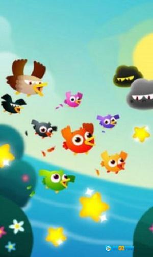 控制群鸟翱翔:指挥一群小鸟在天空中向上翱翔,借助简易操作改变飞行方向,躲开途中可能出现的障碍,维持不断向上的飞行态势。